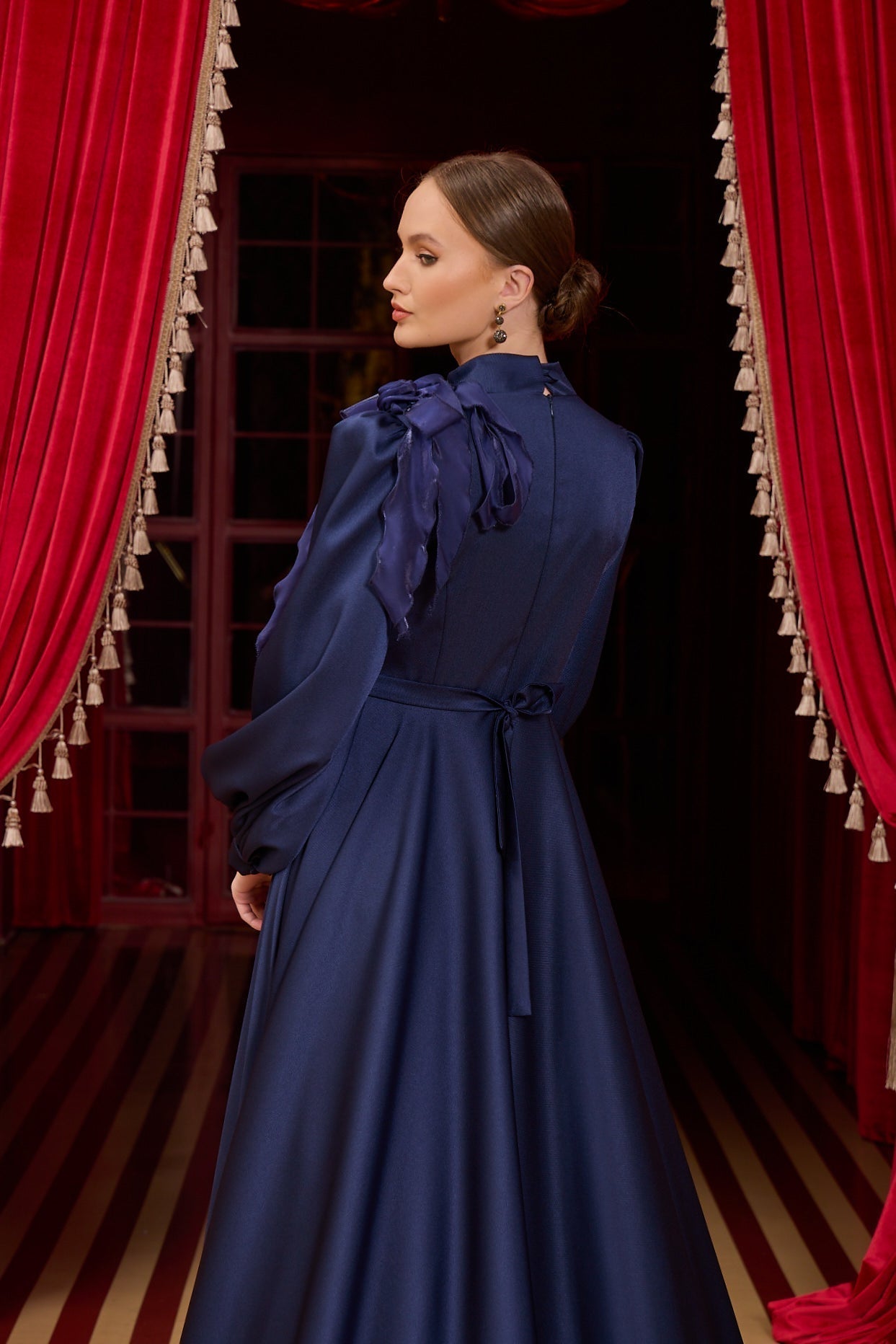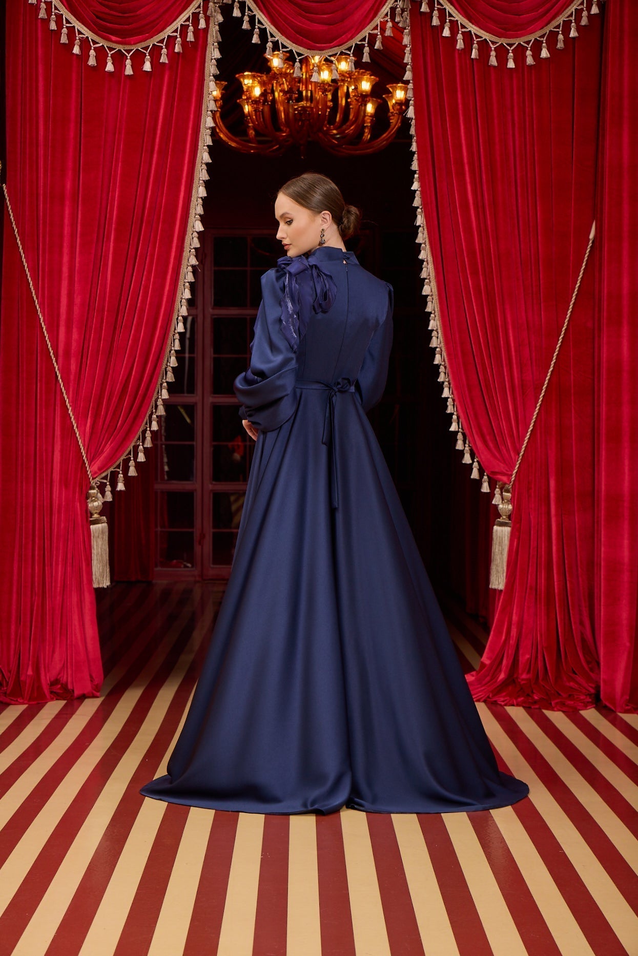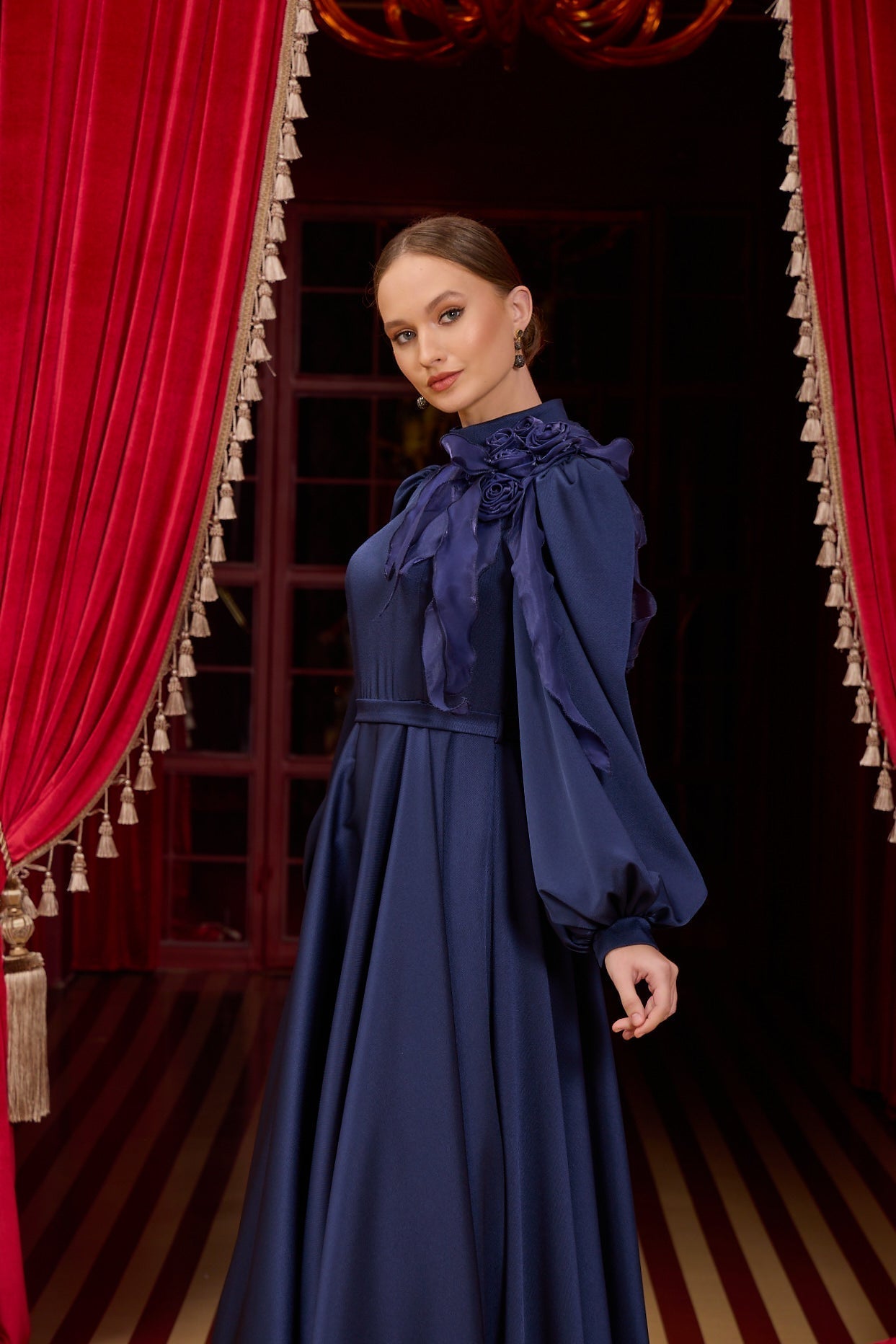 With our specially designed evening gown, which exudes elegance and refinement in every detail, you will find yourself in a different world. With its lines that go beyond the ordinary and its unique touches, this gown is not just a garment, but a work of art through which you can express yourself.