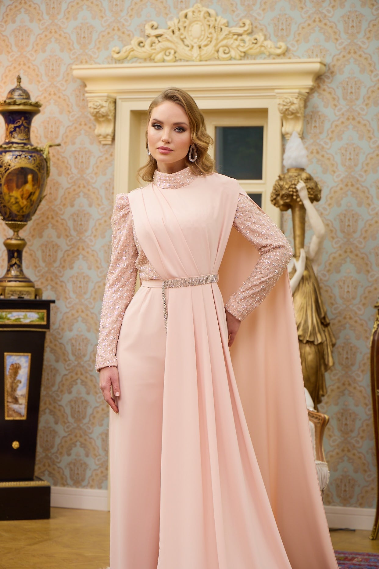 With our specially designed evening gown, which exudes elegance and refinement in every detail, you will find yourself in a different world. With its lines that go beyond the ordinary and its unique touches, this gown is not just a garment, but a work of art through which you can express yourself.