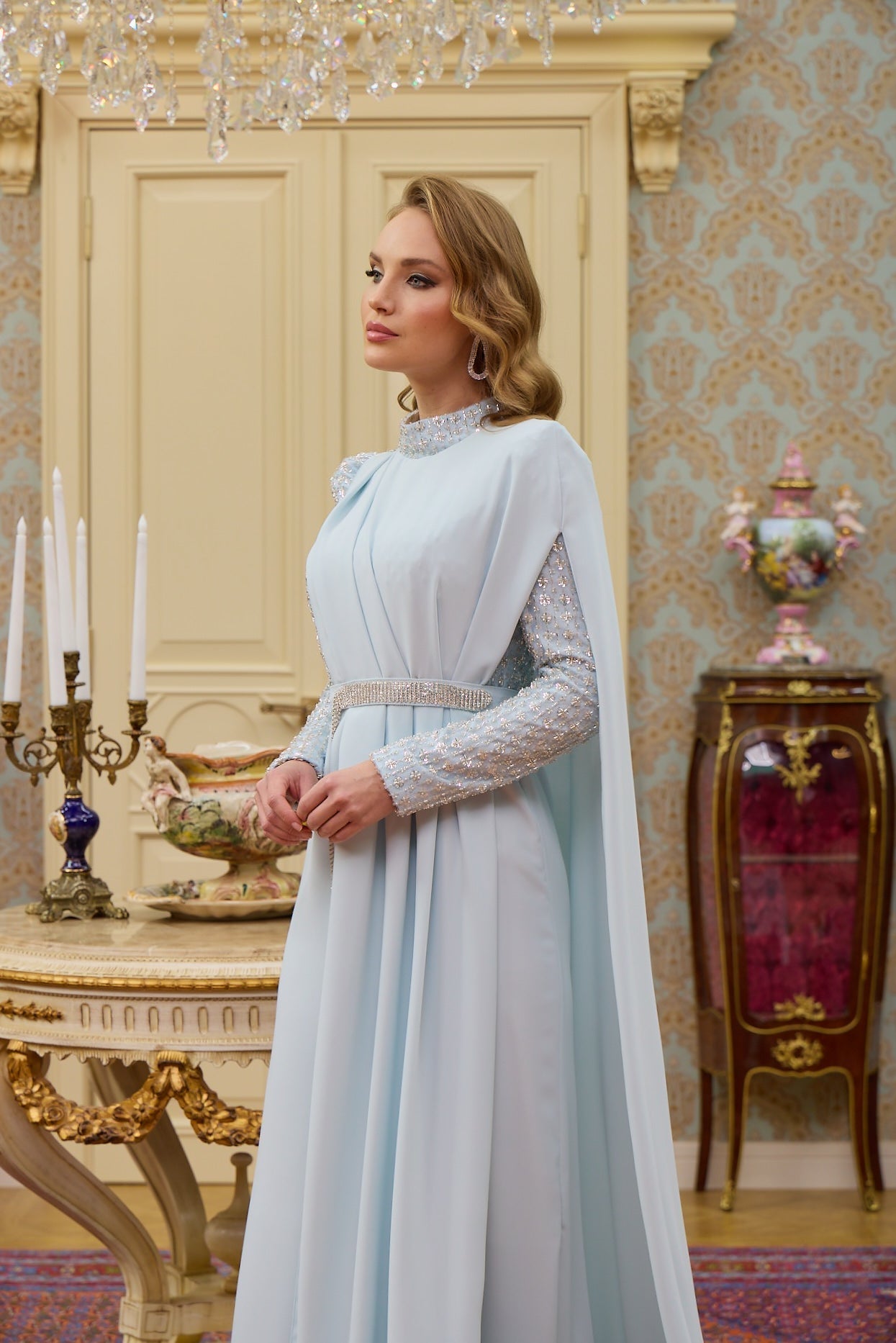 With our specially designed evening gown, which exudes elegance and refinement in every detail, you will find yourself in a different world. With its lines that go beyond the ordinary and its unique touches, this gown is not just a garment, but a work of art through which you can express yourself.