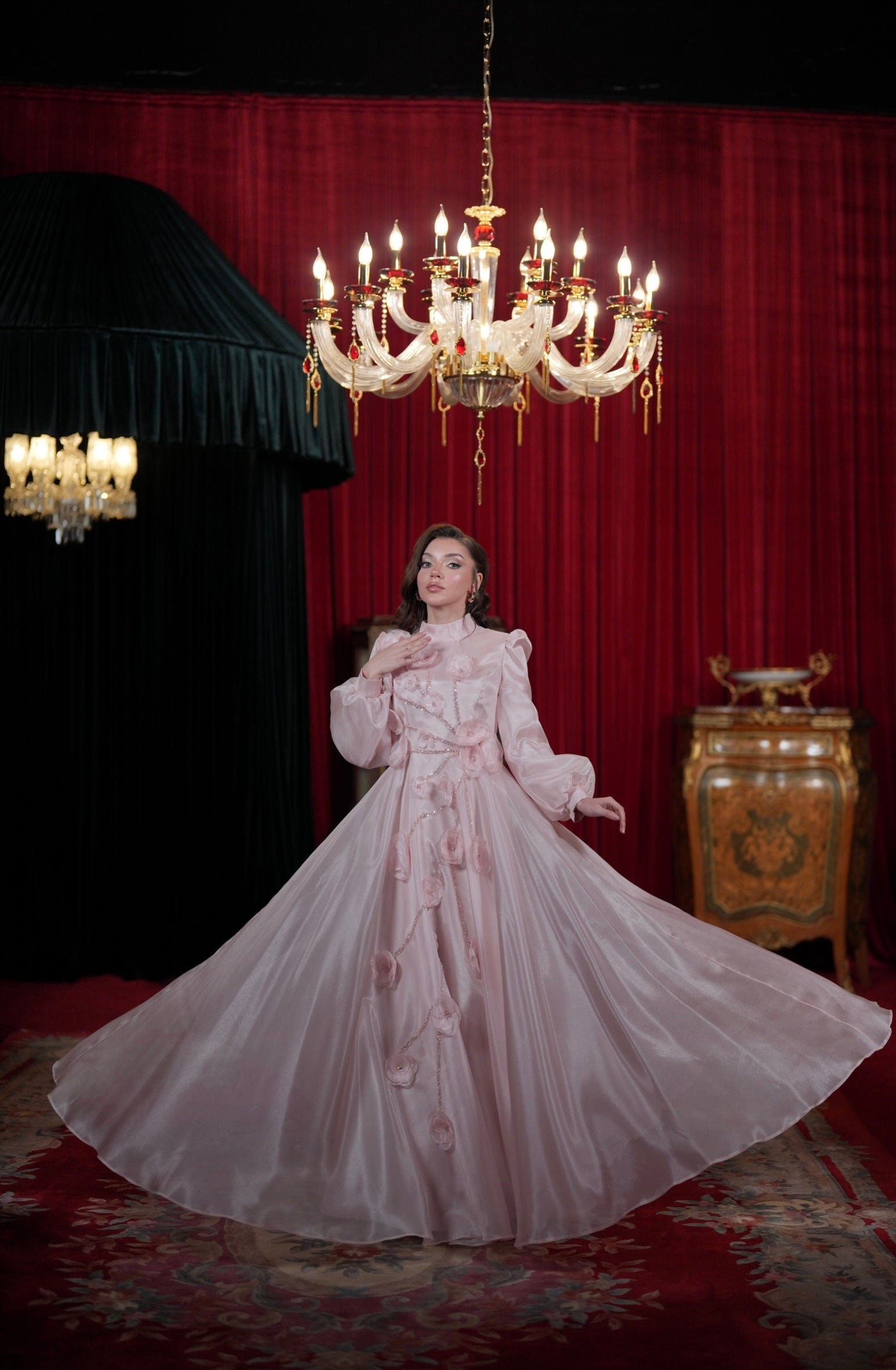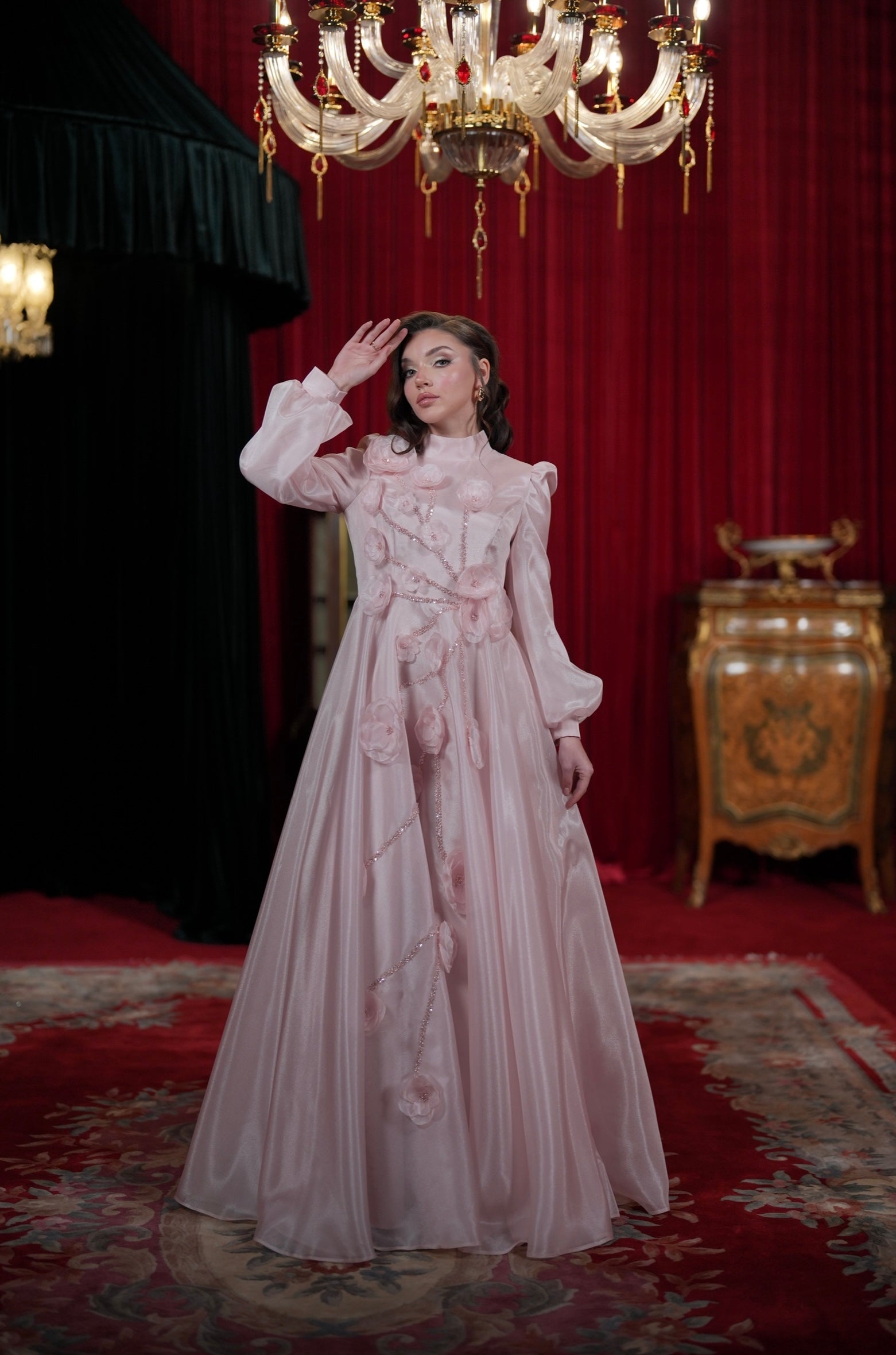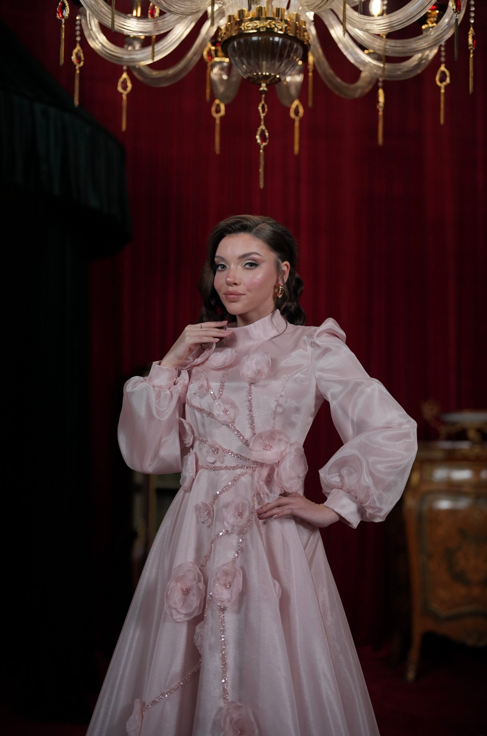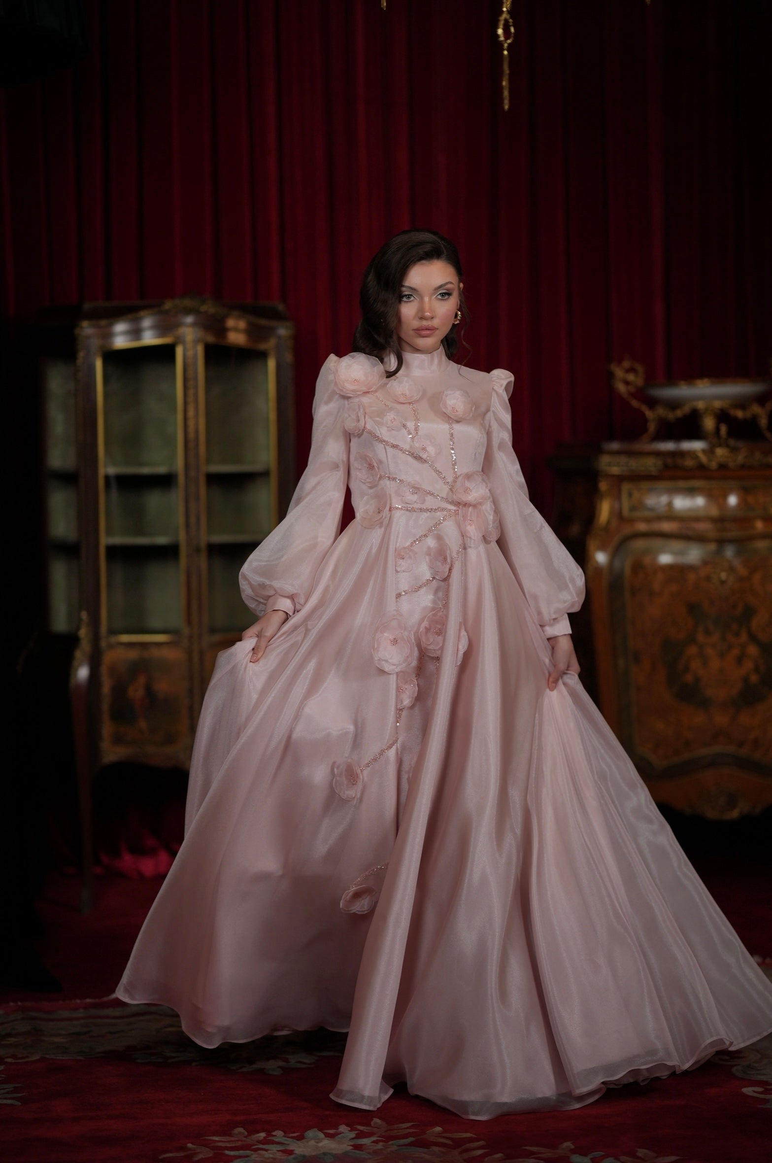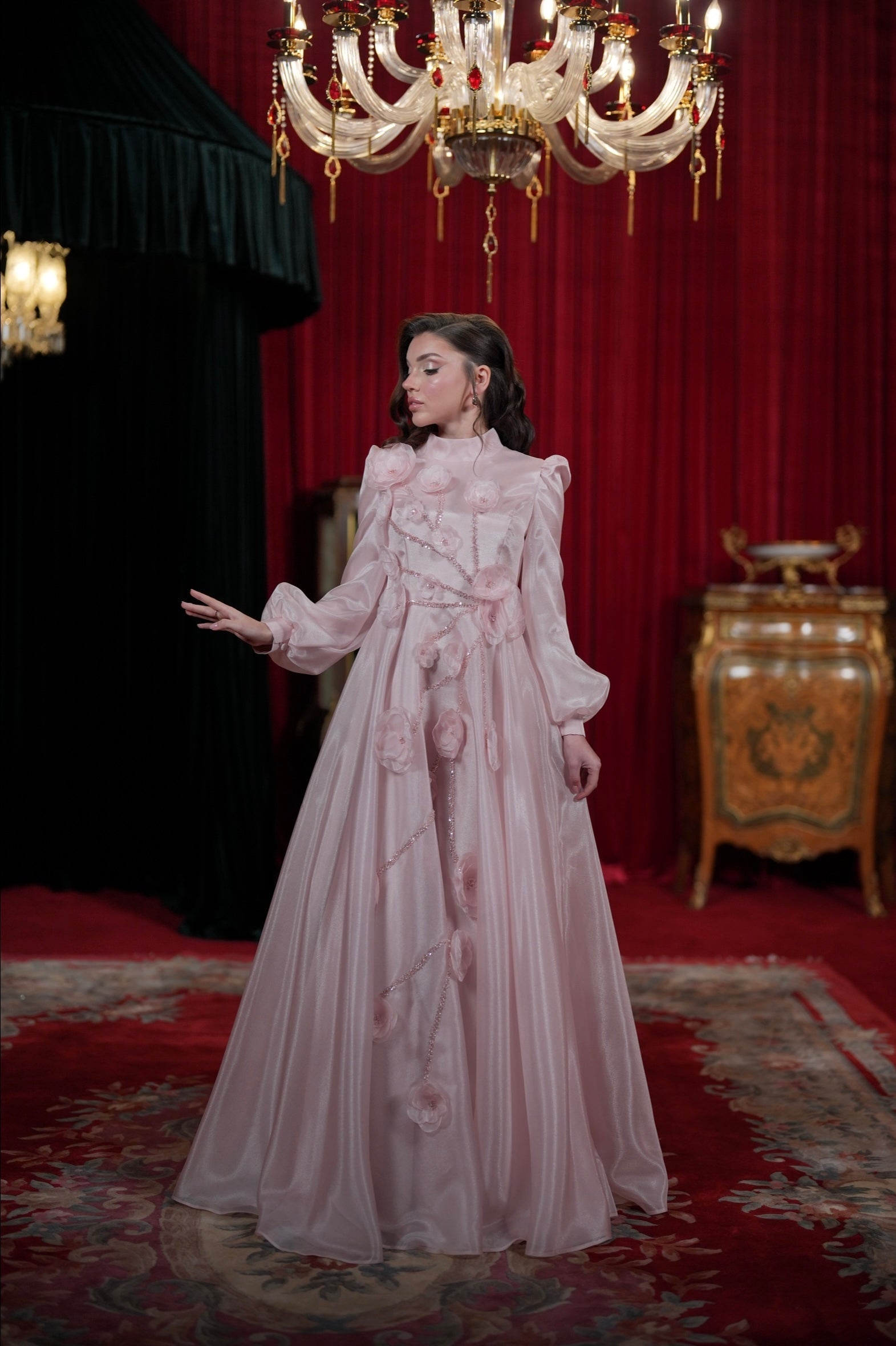 With our specially designed evening gown, which exudes elegance and refinement in every detail, you will find yourself in a different world. With its lines that go beyond the ordinary and its unique touches, this gown is not just a garment, but a work of art through which you can express yourself.