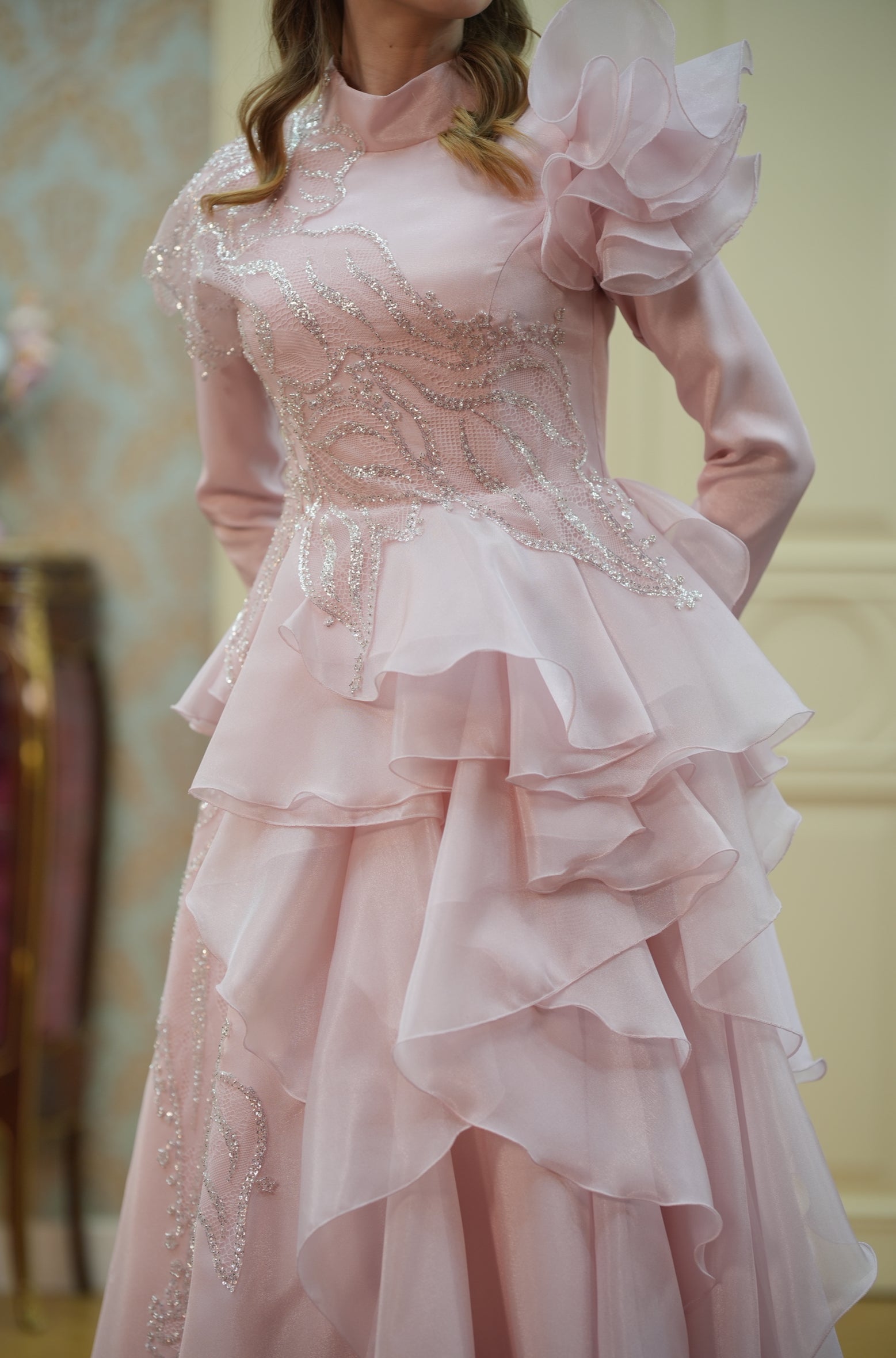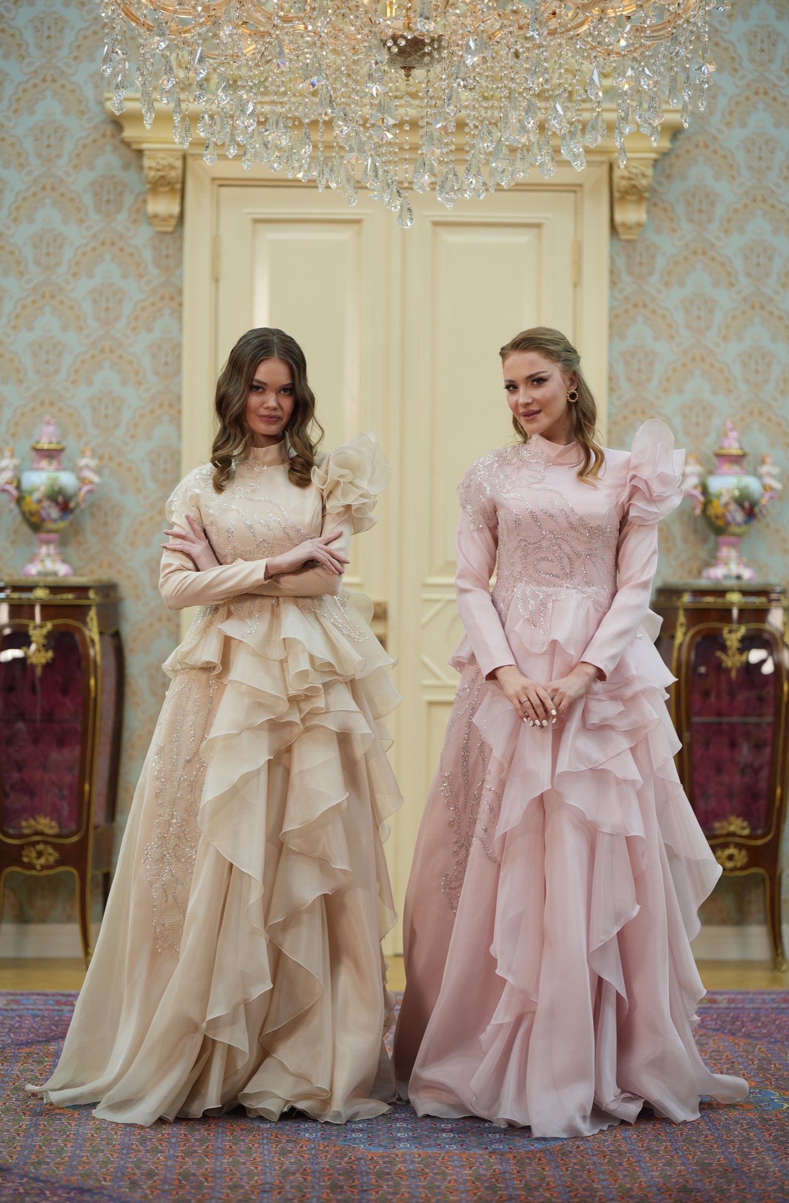 With our specially designed evening gown, which exudes elegance and refinement in every detail, you will find yourself in a different world. With its lines that go beyond the ordinary and its unique touches, this gown is not just a garment, but a work of art through which you can express yourself.