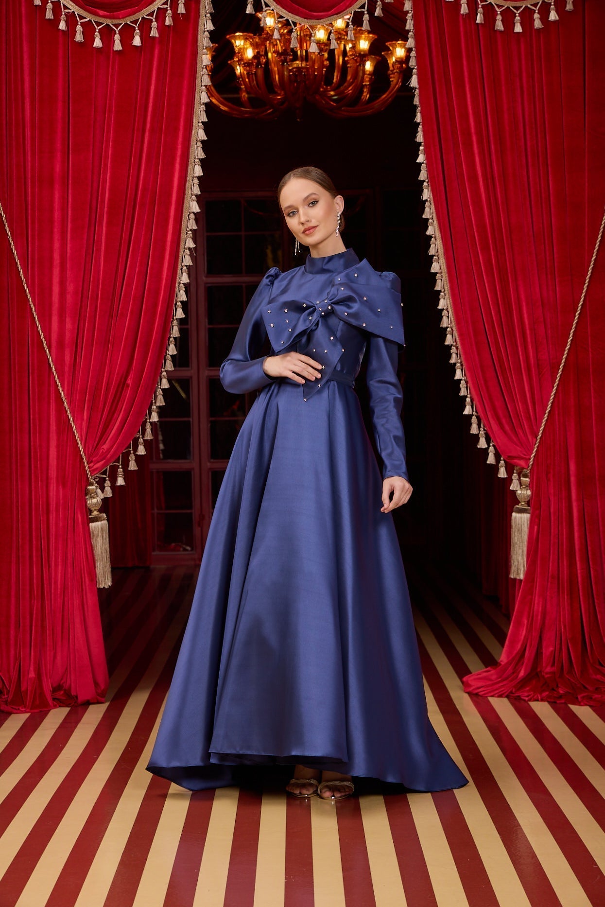 With our specially designed evening gown, which exudes elegance and refinement in every detail, you will find yourself in a different world. With its lines that go beyond the ordinary and its unique touches, this gown is not just a garment, but a work of art through which you can express yourself.