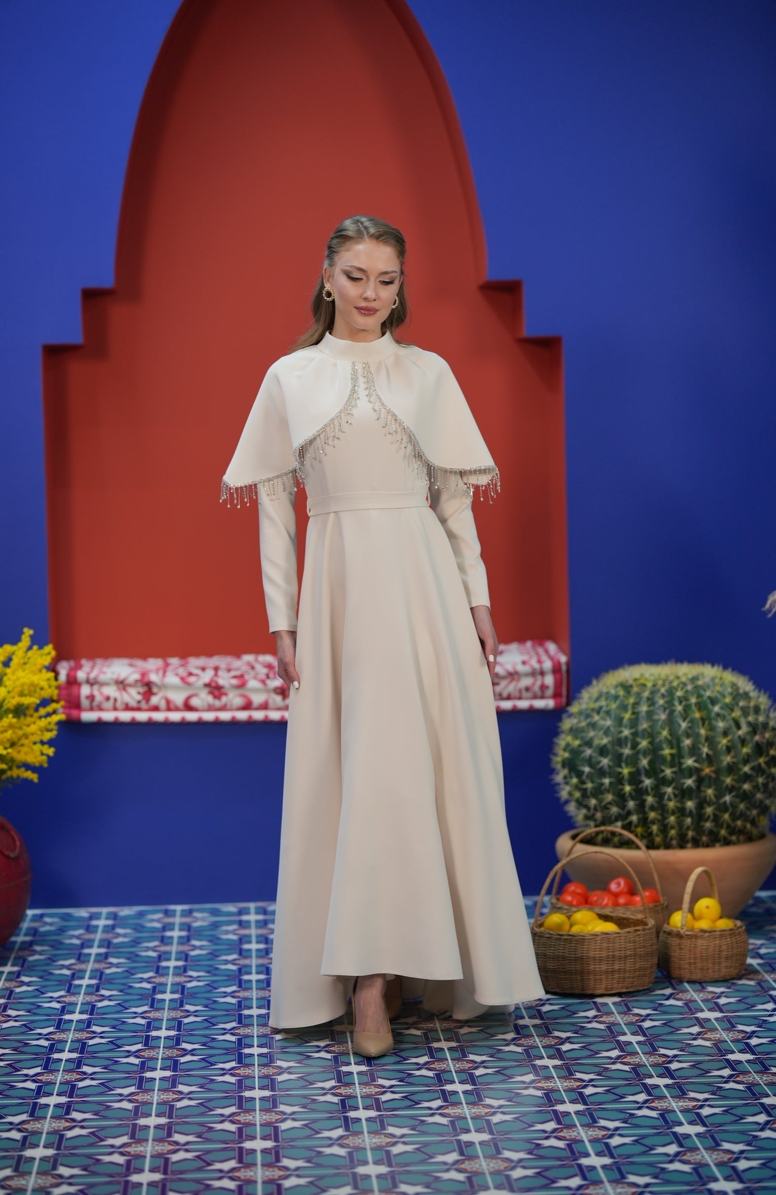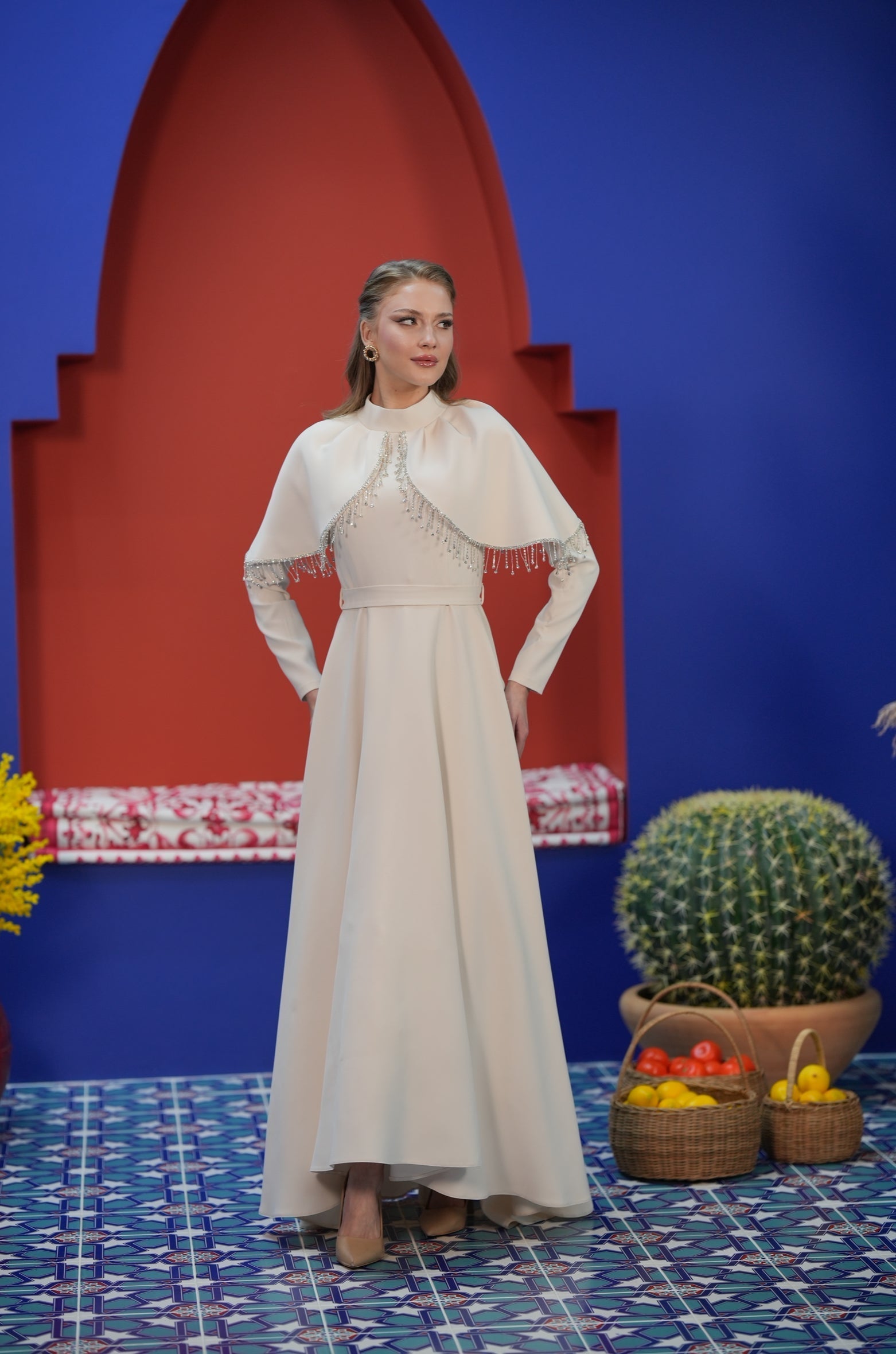 With our specially designed evening gown, which exudes elegance and refinement in every detail, you will find yourself in a different world. With its lines that go beyond the ordinary and its unique touches, this gown is not just a garment, but a work of art through which you can express yourself.