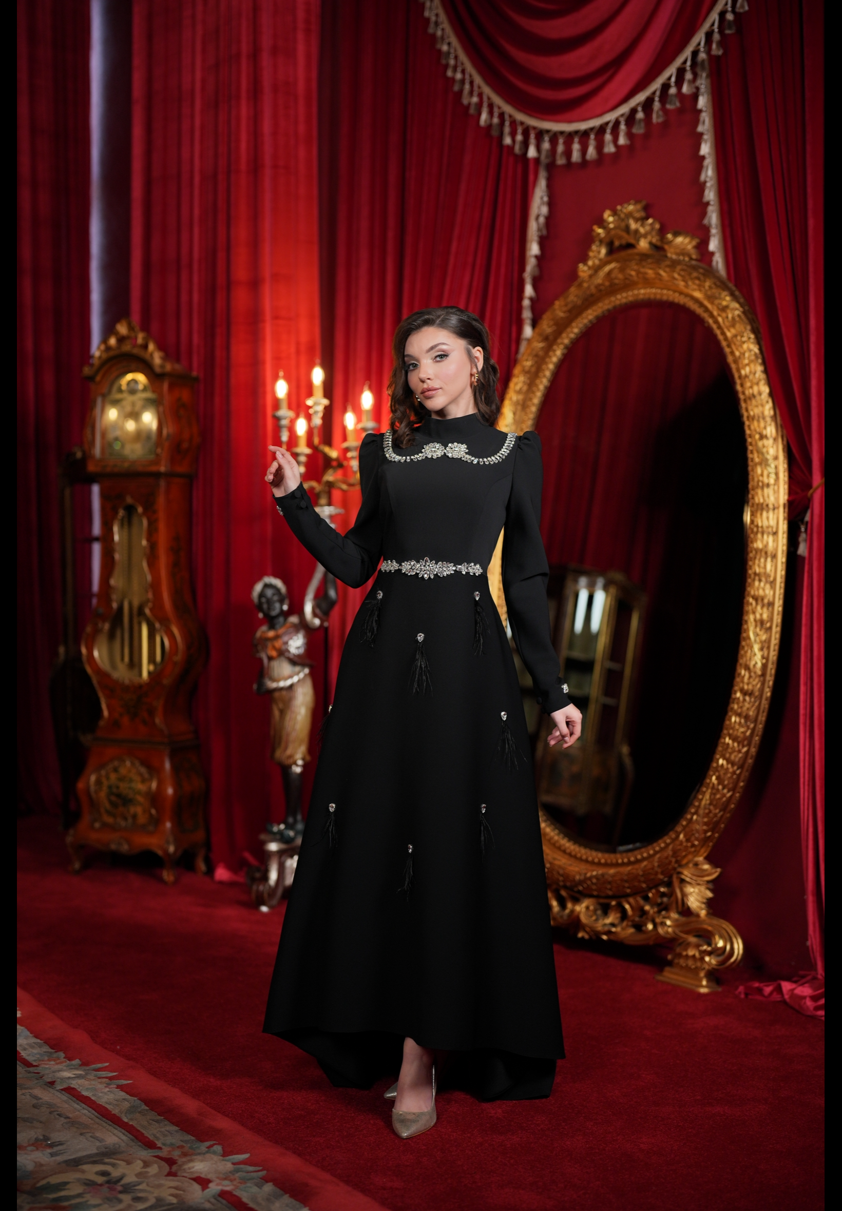 With our specially designed evening gown, which exudes elegance and refinement in every detail, you will find yourself in a different world. With its lines that go beyond the ordinary and its unique touches, this gown is not just a garment, but a work of art through which you can express yourself.