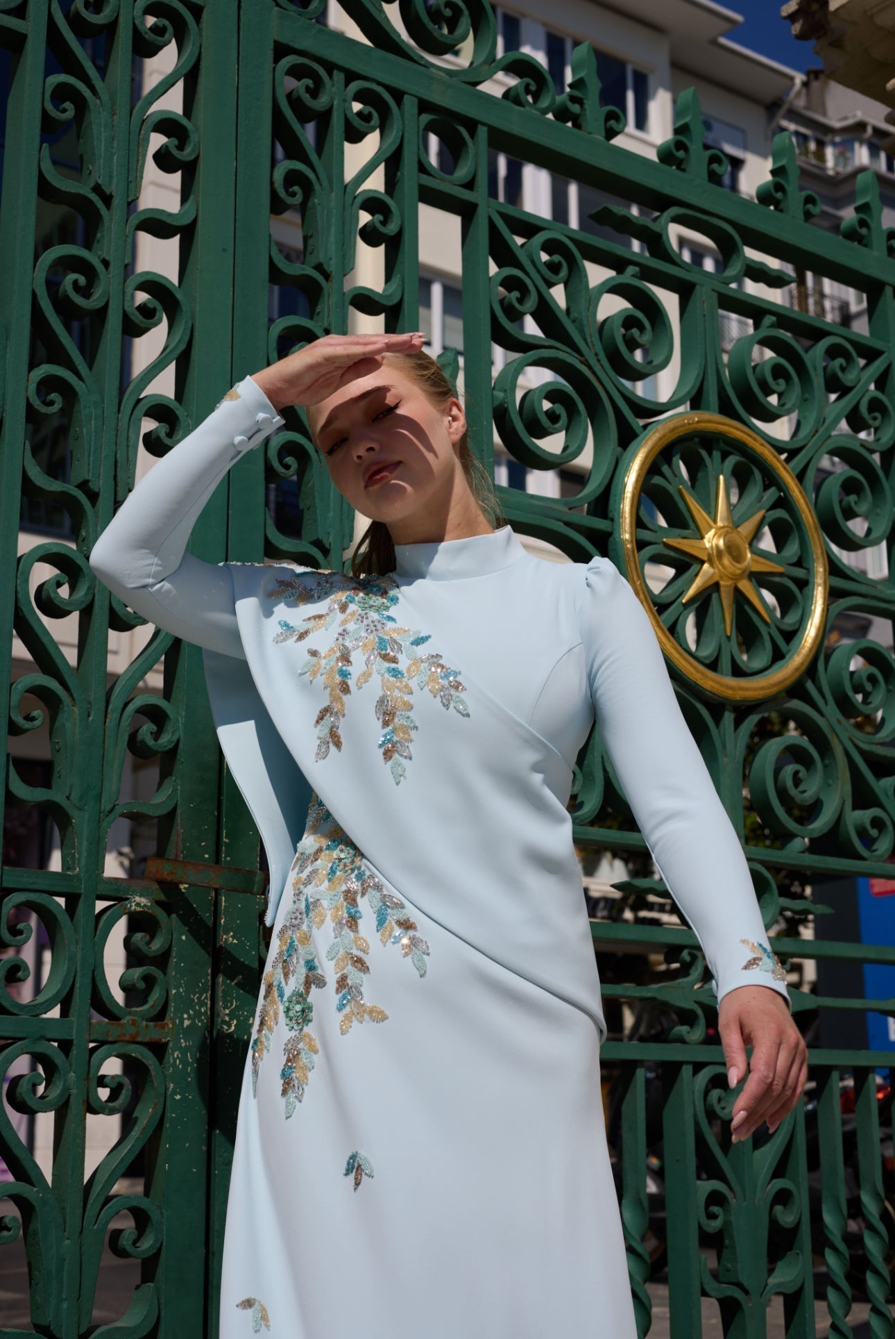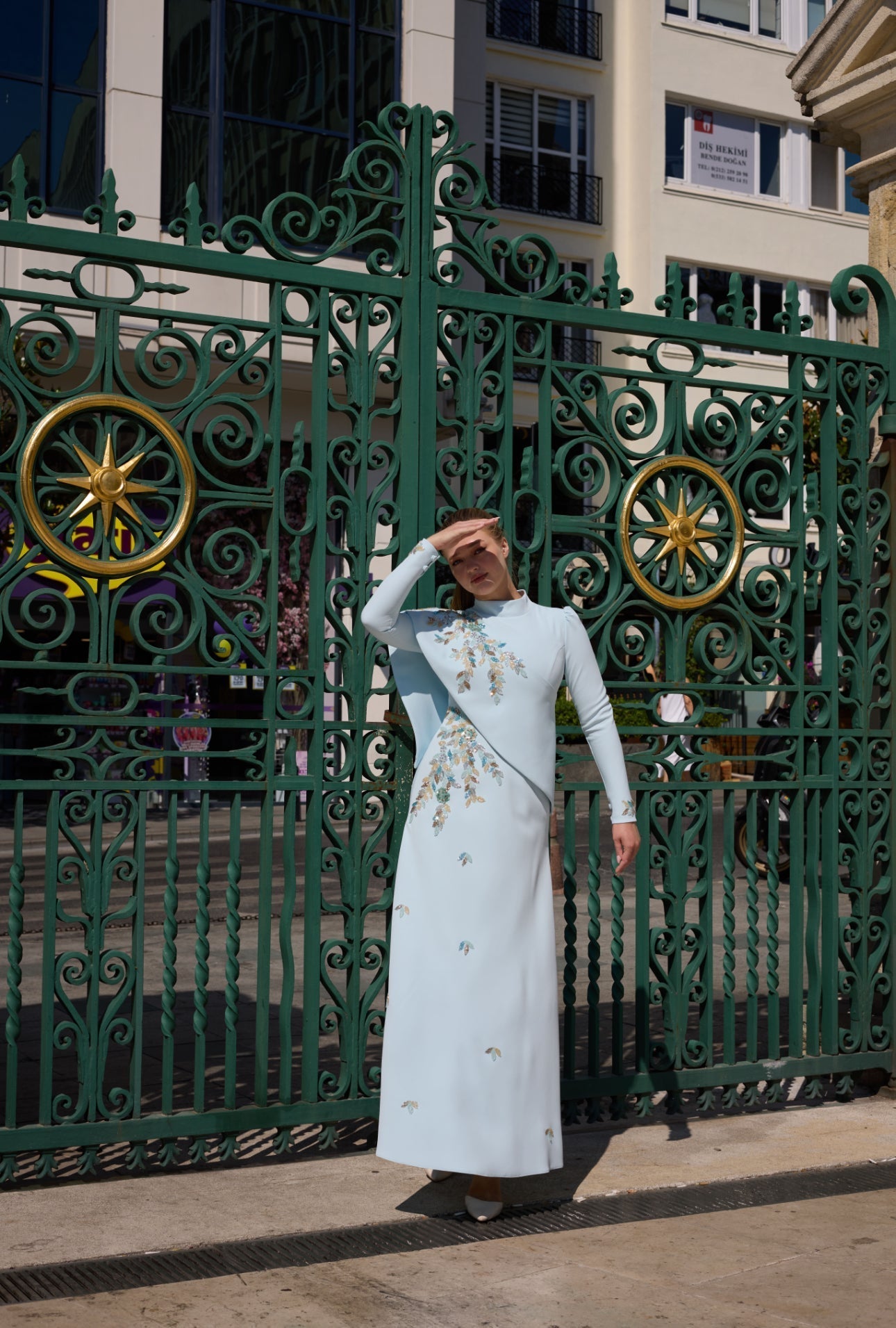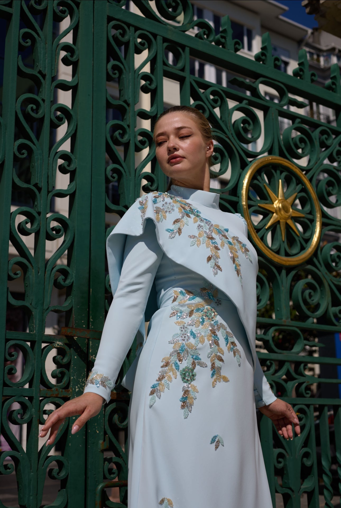 With our specially designed evening gown, which exudes elegance and refinement in every detail, you will find yourself in a different world. With its lines that go beyond the ordinary and its unique touches, this gown is not just a garment, but a work of art through which you can express yourself.