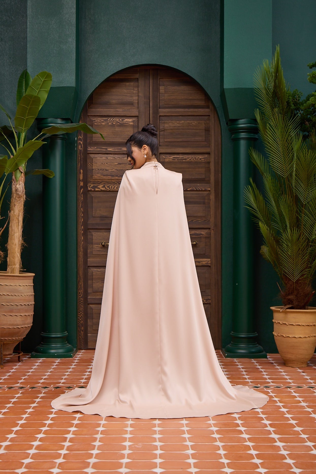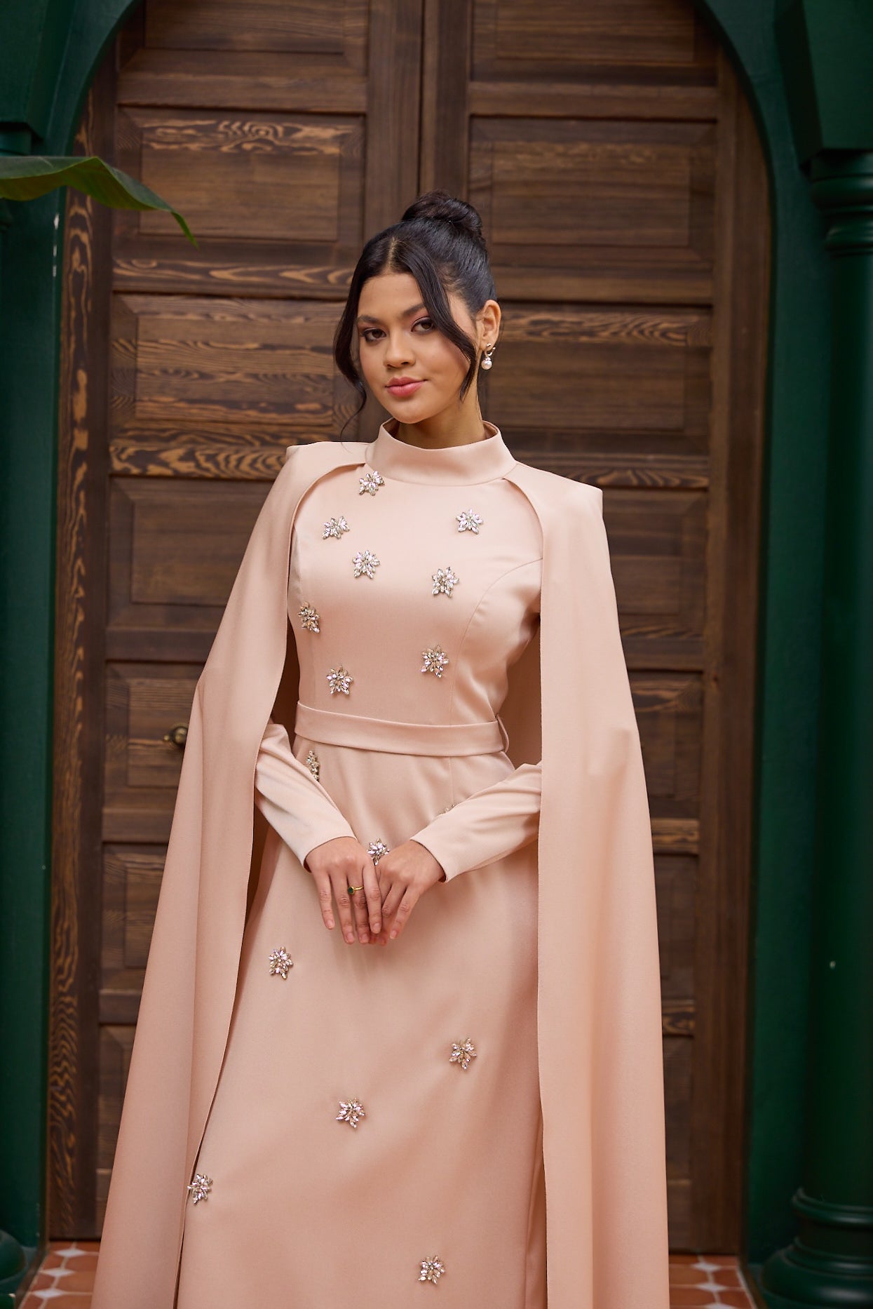 Embellished Cape Evening Dress Powder Pink